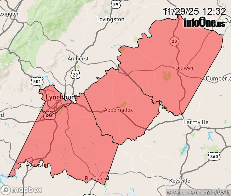 Canceled 11/29/25 7:12 PM Winter Weather Advisory issued November 29 at 12:30PM EST until November 30 at 12:00PM EST by NWS Blacksburg VA * WHAT... Freezing rain expected. Ice accumulation will be a light glaze. * WHERE... Appomattox, Buckingham, and Campbell Counties. * WHEN... From 4 AM to noon EST Sunday. * IMPACTS... Roads, and especially bridges and overpasses, will likely become slick and hazardous. Plan on slippery road conditions. ![]() |