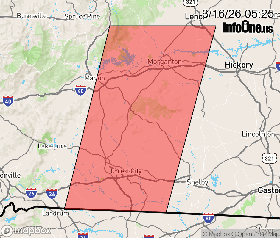 Canceled 3/16/26 5:48 AM Severe Thunderstorm Warning issued March 16 at 5:24AM EDT until March 16 at 6:15AM EDT by NWS Greenville-Spartanburg SC SVRGSP The National Weather Service in Greenville-Spartanburg has issued a * Severe Thunderstorm Warning for... Eastern McDowell County in western North Carolina... Rutherford County in western North Carolina... Eastern Polk County in western North Carolina... Southwestern Caldwell County in western North Carolina... Western Cleveland County in the Piedmont of North Carolina... Burke County in western North Carolina... * Until 615 AM EDT. * At 523 AM EDT, severe thunderstorms were located along a line extending from 11 miles northwest of Morganton to 7 miles east of Columbus, moving east at 25 mph. HAZARD...60 mph wind gusts. SOURCE...Radar indicated. IMPACT...Expect damage to trees and power lines. * Locations impacted include... Morganton, Forest City, Rutherfordton, Sawmills, Valdese, Spindale, Gamewell, Boiling Springs NC, Hudson, and Cajah's Mountain. ![]() |
