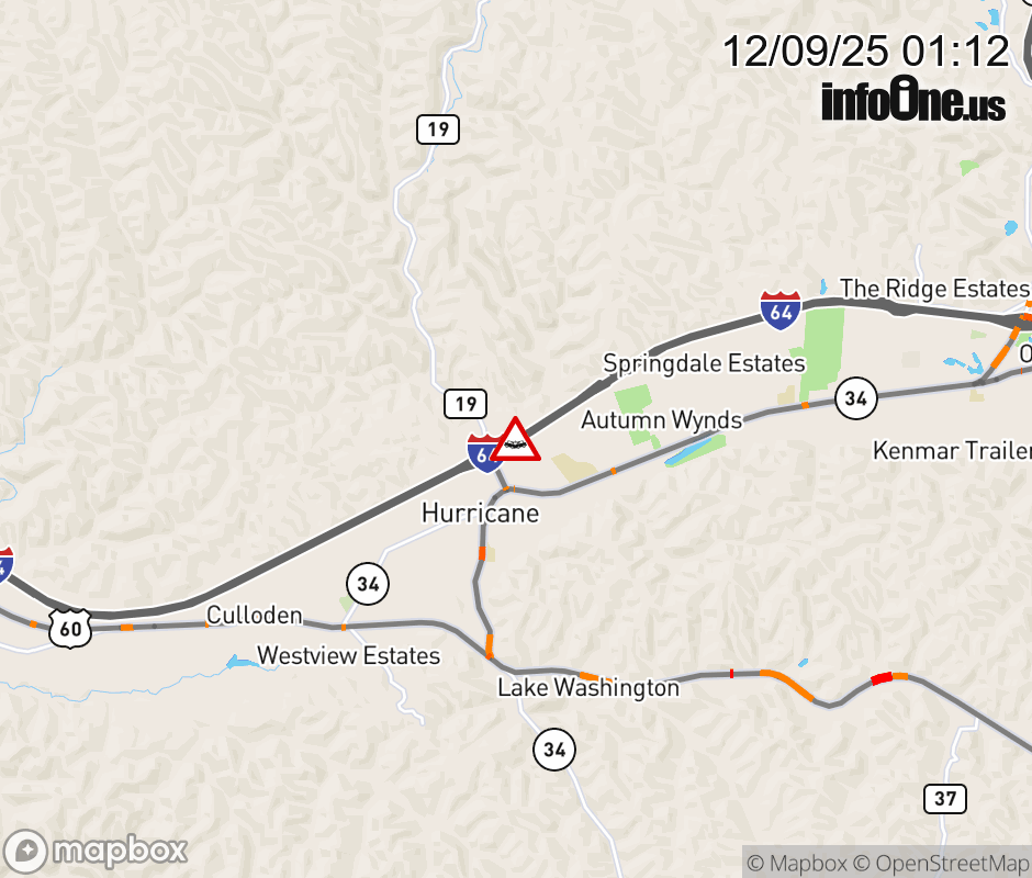 Vehicle Crash on I-64W at Mile Marker 34.0. Updated: Tue 12/9/25 1:12 AM EST ![]() Updated: Tue 12/9/25 1:12 AM EST |