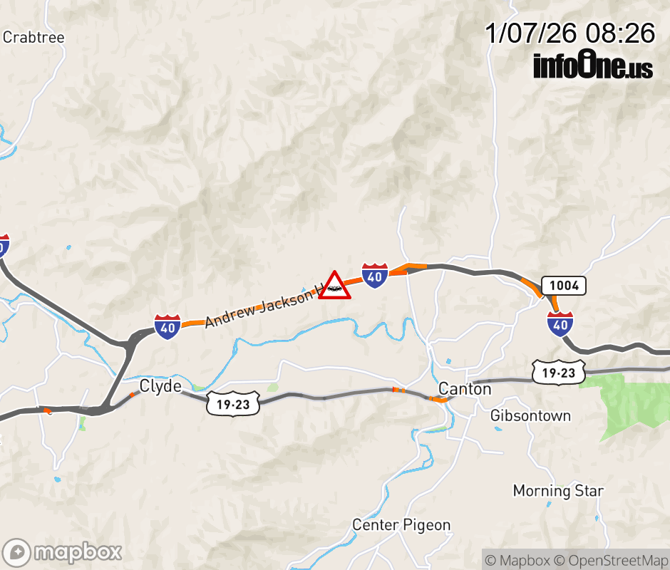 The lanes are closed 2 miles west of Exit 33, SR-1004 (Newfound Road). ![]() |