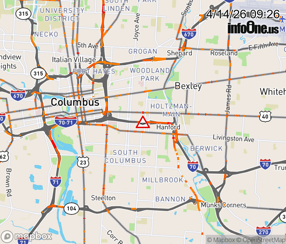 The right shoulder is blocked on I-70 West beyond Kelton Ave/Miller Ave, due to a crash. Updated: Tue 4/14/26 9:26 AM EDT ![]() Updated: Tue 4/14/26 9:26 AM EDT |