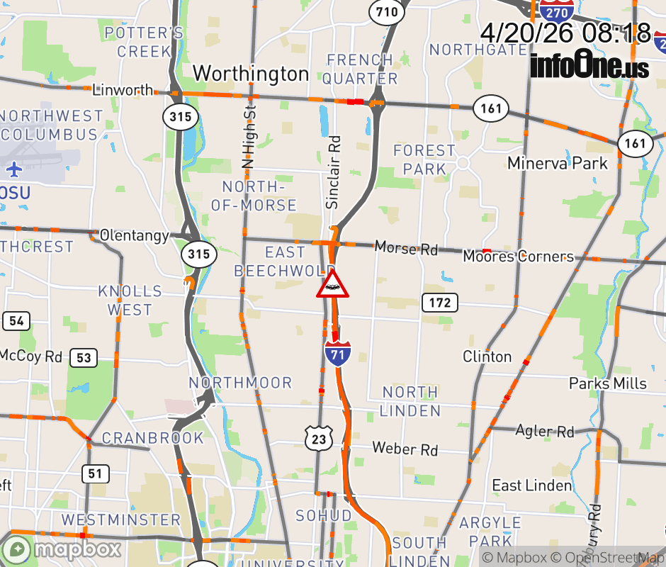 The right shoulder is blocked on I-71 South beyond Sinclair Rd/Morse Rd, due to a crash. ![]() |