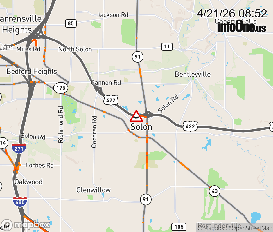 Ramp to SR-91/SOM Center Rd from US-422 East is blocked due to crash. ![]() |