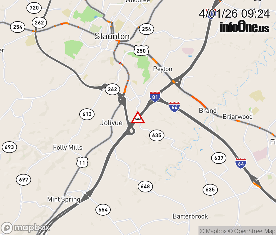 On I-81 at mile marker 221 in the County of Augusta, motorists can expect delays due to a tractor trailer crash. The south right shoulder is closed. ![]() |