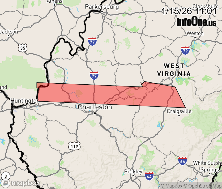 Canceled 1/15/26 11:34 AM Snow Squall Warning issued January 15 at 11:00AM EST until January 15 at 12:00PM EST by NWS Charleston WV The National Weather Service in Charleston West Virginia has issued a * Snow Squall Warning for... South central Gallia County in southeastern Ohio... Southwestern Mason County in western West Virginia... Northeastern Cabell County in central West Virginia... North central Nicholas County in southeastern West Virginia... Central Putnam County in western West Virginia... Northern Kanawha County in central West Virginia... Southwestern Braxton County in north central West Virginia... Southern Roane County in central West Virginia... West central Webster County in northeastern West Virginia... Clay County in north central West Virginia... Southeastern Jackson County in northwestern West Virginia... * Until noon EST. * At 1059 AM EST, a dangerous snow squall was located along a line extending from 14 miles north of Proctorville to Big Otter to 10 miles northwest of Birch River, moving southeast at 20 mph. HAZARD...Intense bursts of heavy snow. Gusty winds leading to blowing snow and visibility rapidly falling to less than one-quarter mile. Wind gusts up to 35 mph. SOURCE...Radar indicated. IMPACT...Travel will become difficult and potentially dangerous within minutes. This includes the following highways... Interstate 79 between mile markers 8 and 47. Interstate 77 in West Virginia between mile markers 109 and 120. Interstate 64 in West Virginia between mile markers 36 and 44. Route 19 between mile markers 52 and 66. Locations impacted include... Winfield, Clay, Sissonville, Eleanor, Buffalo, Clendenin, Poca, Birch River, Big Otter, Amma, Wallback, Teays Valley, Elkview, Cross Lanes, Harrison, Bancroft, Crown City, Nebo, Procious, and Liberty. ![]() |