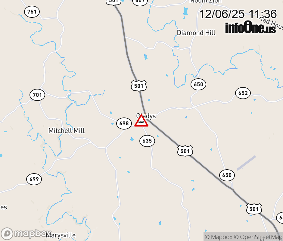 On Rt. 761 North in the County of Campbell, in the vicinity of Collins Ferry Rd; Rt. 635N/S (Campbell County), motorists can expect delays due to a tractor trailer crash. Lane closures exist. ![]() |