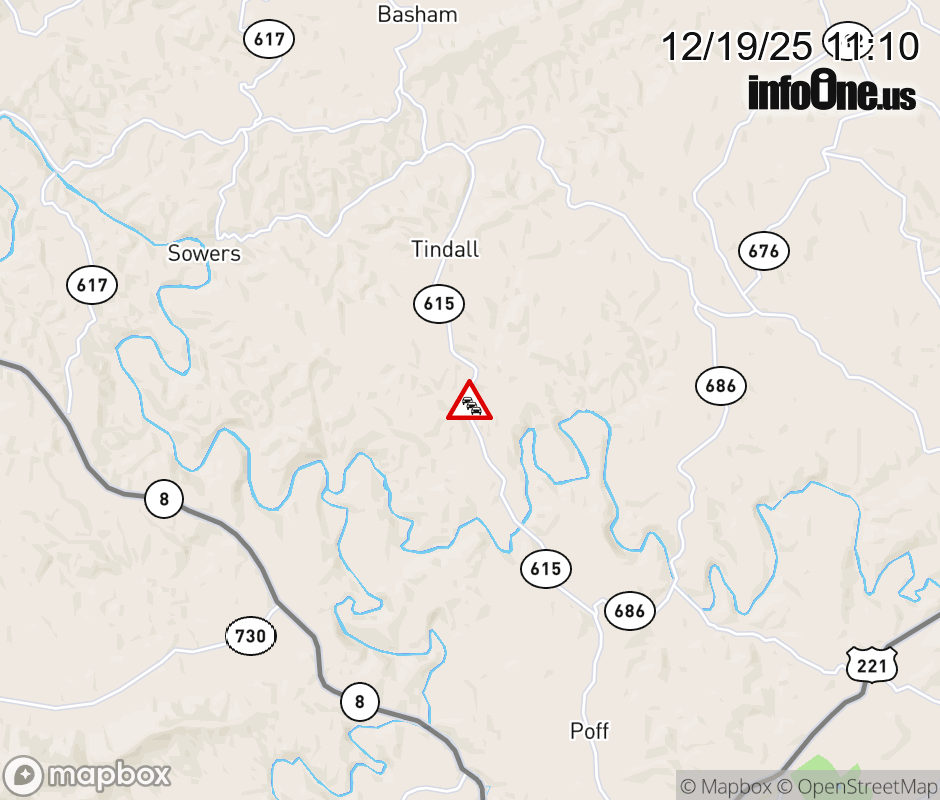 On Rt. 615 in the County of Floyd, in the vicinity of Huckleberry Ridge Rd; Huckleberry Ridge Rd NE; Rt. 689E/W (Floyd County), motorists can expect delays due to weather. All north lanes are closed. All south lanes are closed. ![]() |