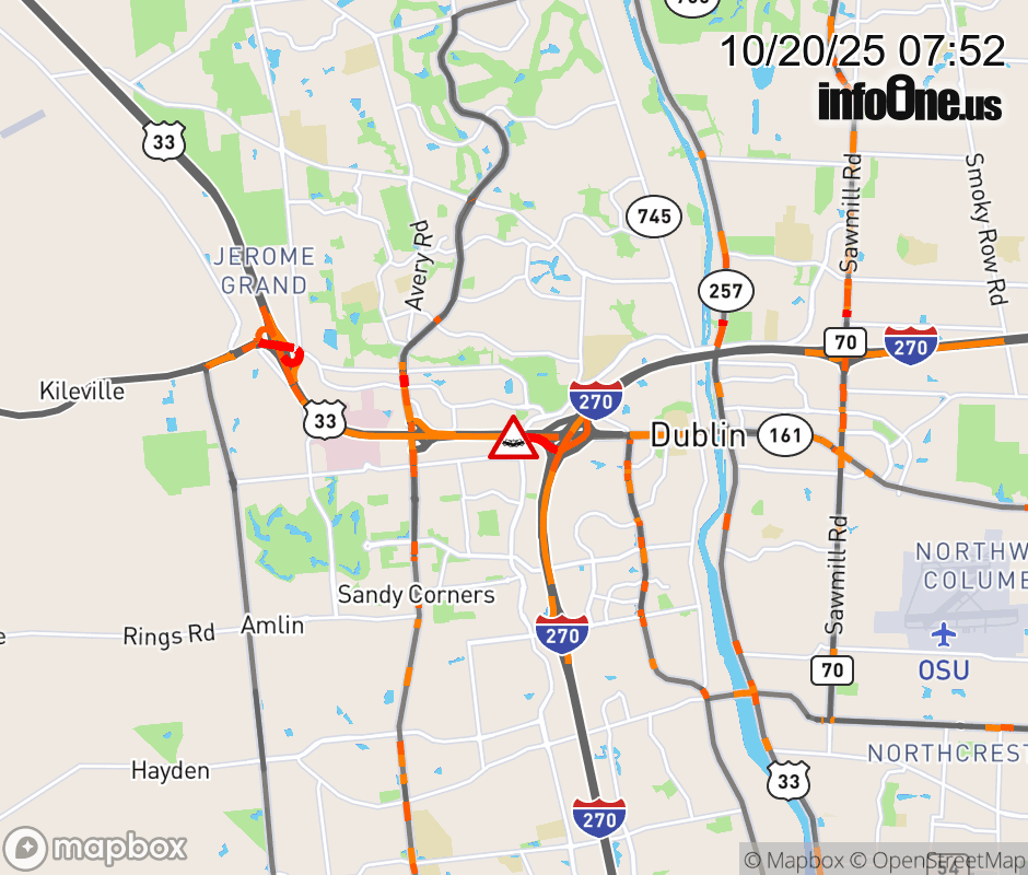 The right shoulder is blocked on US-33/SR-161 East at I-270, due to a crash. Updated: Mon 10/20/25 7:52 AM EDT ![]() Updated: Mon 10/20/25 7:52 AM EDT |