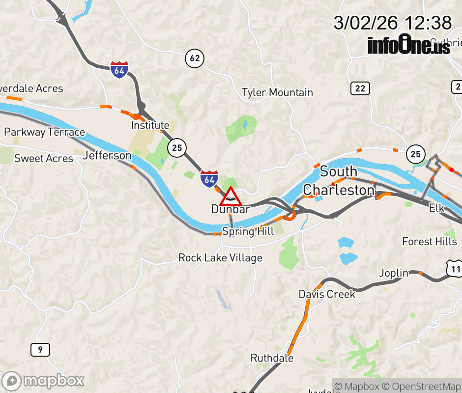 Vehicle Crash on WV-25 (10th St) & I-64 West Exit Ramp (MM 53) in Dunbar. ![]() |