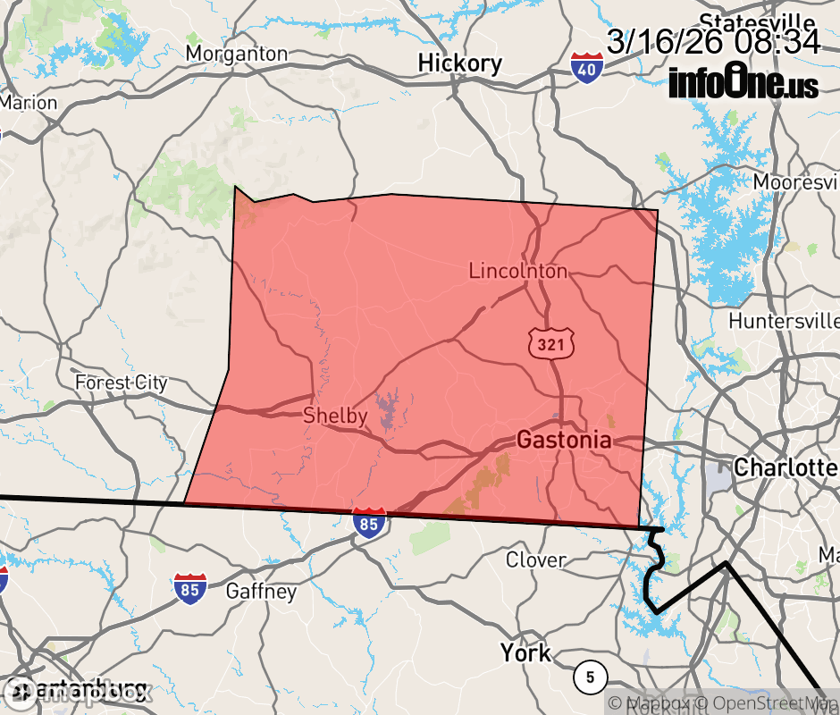 Canceled 3/16/26 9:10 AM Severe Thunderstorm Warning issued March 16 at 8:33AM EDT until March 16 at 9:30AM EDT by NWS Greenville-Spartanburg SC SVRGSP The National Weather Service in Greenville-Spartanburg has issued a * Severe Thunderstorm Warning for... Lincoln County in the Piedmont of North Carolina... Cleveland County in the Piedmont of North Carolina... Gaston County in the Piedmont of North Carolina... * Until 930 AM EDT. * At 832 AM EDT, severe thunderstorms were located along a line extending from 13 miles south of Morganton to 8 miles north of Gaffney, moving east at 40 mph. HAZARD...60 mph wind gusts. SOURCE...Radar indicated. IMPACT...Expect damage to trees and power lines. * Locations impacted include... Gastonia, Shelby, Lincolnton, Kings Mountain, Cherryville, Bessemer City, South Gastonia, Boiling Springs NC, Dallas, and Stanley. ![]() |