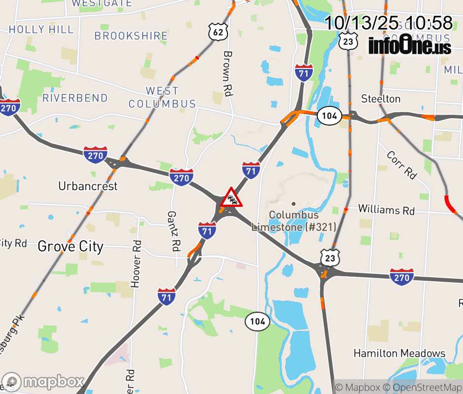 The right lane is blocked on I-71 South beyond I-270 (South Side), due to debris on roadway. ![]() |