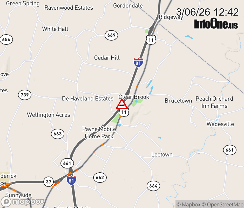 On I-81 at mile marker 321 in the County of Frederick, motorists can expect delays due to a vehicle crash. The south entrance ramp is closed. ![]() |