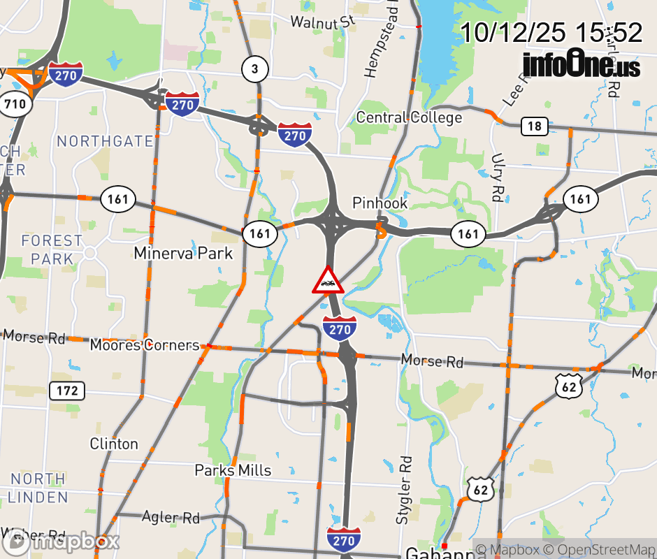 The 2 right lanes are blocked on I-270 South beyond SR-161/Dublin Granville Rd, due to a disabled vehicle. Updated: Sun 10/12/25 3:52 PM EDT ![]() Updated: Sun 10/12/25 3:52 PM EDT |