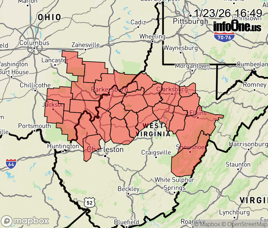 Canceled 1/23/26 10:02 PM Cold Weather Advisory issued January 23 at 4:48PM EST until January 24 at 10:00AM EST by NWS Charleston WV * WHAT... Very cold wind chills as low as 12 below expected. * WHERE... Portions of southeast Ohio and central, northeast, northern, southern, and western West Virginia. * WHEN... From 8 PM this evening to 10 AM EST Saturday. * IMPACTS... The cold wind chills as low as 10 below zero could result in hypothermia if precautions are not taken. ![]() |