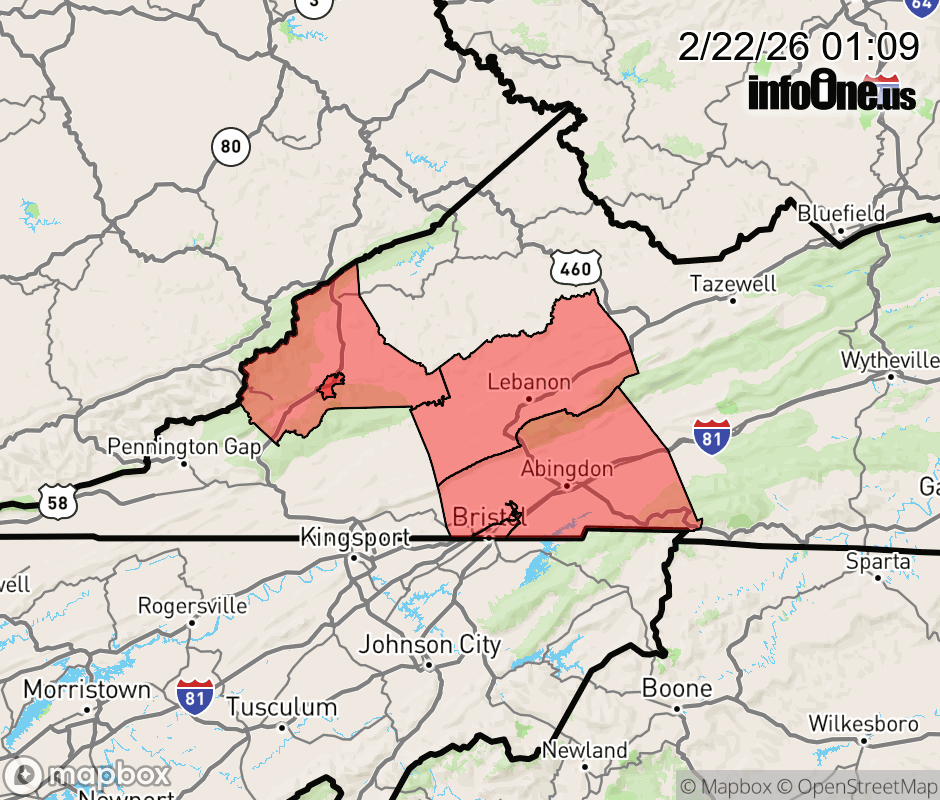 Canceled 2/22/26 12:59 PM Winter Weather Advisory issued February 22 at 1:07AM EST until February 24 at 12:00AM EST by NWS Morristown TN * WHAT... Two rounds of snow are expected. Light snow this morning. Then the second round from Sunday night through Monday. Total snow accumulations from both rounds from 1 to 4 inches above 2500 feet. Isolated amounts between 4 to 6 inches across the highest peaks and ridges. Winds gusting as high as 35 mph. Single digit to near zero wind chills expected at times. * WHERE... Russell, Washington VA, and Wise Counties. * WHEN... Until midnight EST Monday Night. * IMPACTS... Plan on slippery road conditions. The hazardous conditions could impact the Monday morning and evening commutes. ![]() |