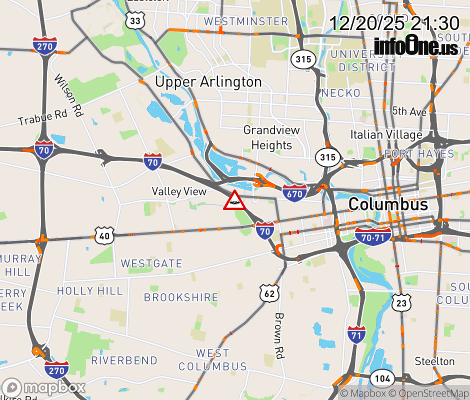 The left lane is closed on I-70 East beyond I-670 East, due to a crash. Updated: Sat 12/20/25 9:30 PM EST ![]() Updated: Sat 12/20/25 9:30 PM EST |