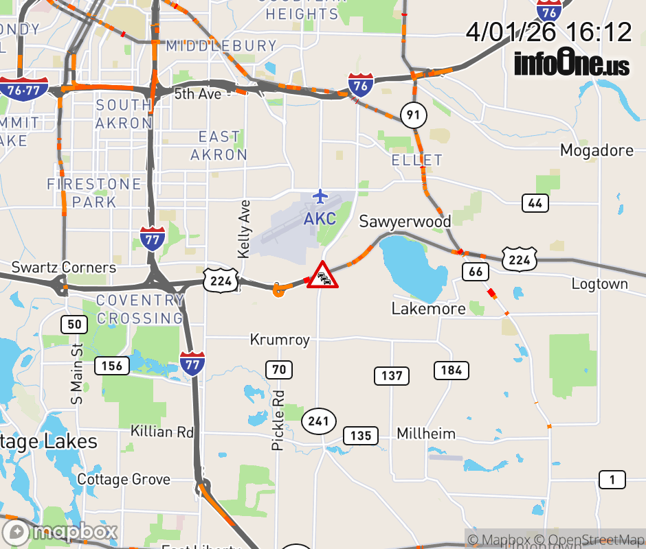 The 2 left lanes are blocked on SR-241 South at E Waterloo Rd, due to debris on roadway. ![]() |