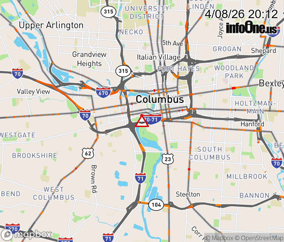 The left shoulder is blocked on Ramp I-71 South/I-70 West to I-71 South, due to a crash. ![]() |