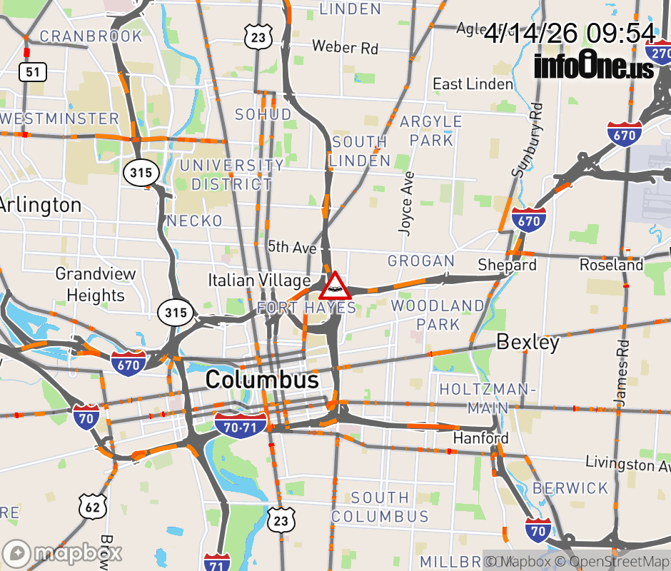 Ramp I-670 West to I-71 North CLOSED because of a crash. ![]() |