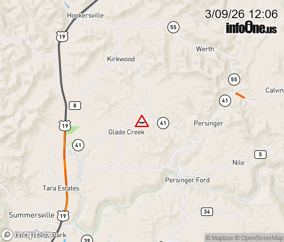 Vehicle Crash on WV-41(Webster Rd) . The northbound road is closed. The southbound road is closed. ![]() |