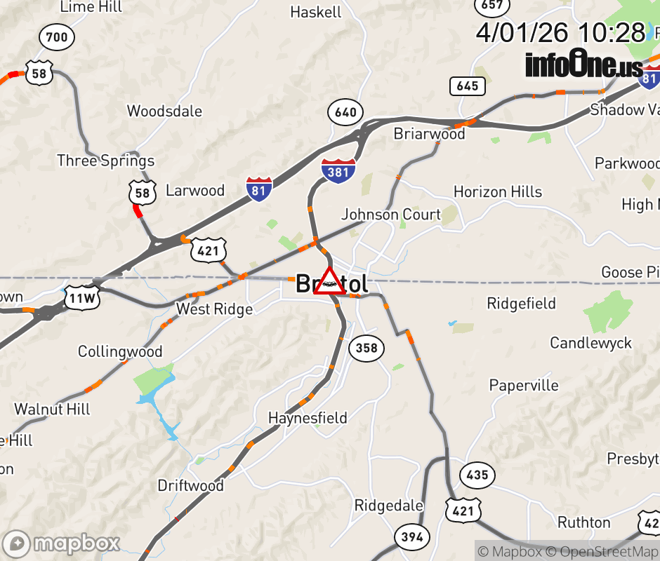 On US-19 South in the County of Tazewell, in the vicinity of Kents Ridge Rd; Steelsburg Hwy; Rt. 609N/S (Tazewell County), motorists can expect delays due to a vehicle crash. Lane closures exist. ![]() |