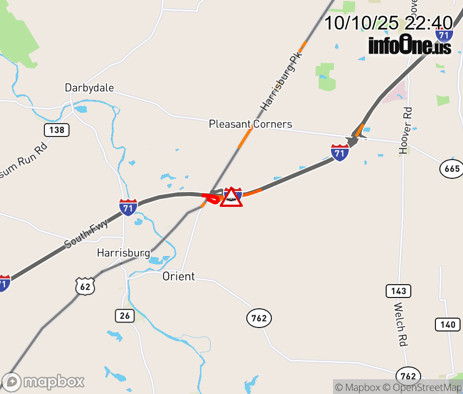 All lanes are closed on I-71 North beyond US-62/SR-3, due to a crash. Updated: Fri 10/10/25 10:40 PM EDT ![]() |