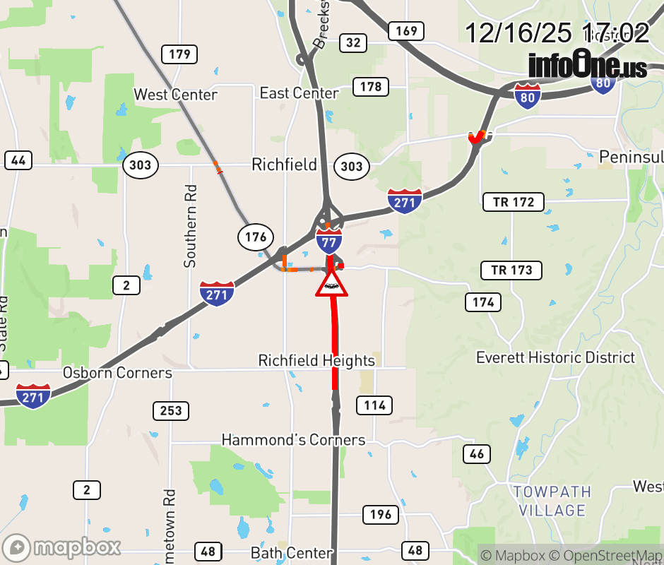 Canceled 12/16/25 5:52 PM Location: I-77 South S, OH Accident.