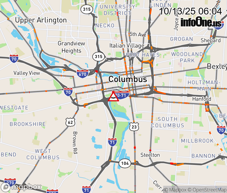 The right lane is blocked on I-70 West at I-70 West/I-71 South, due to a crash. Updated: Mon 10/13/25 6:04 AM EDT ![]() Updated: Mon 10/13/25 6:04 AM EDT |