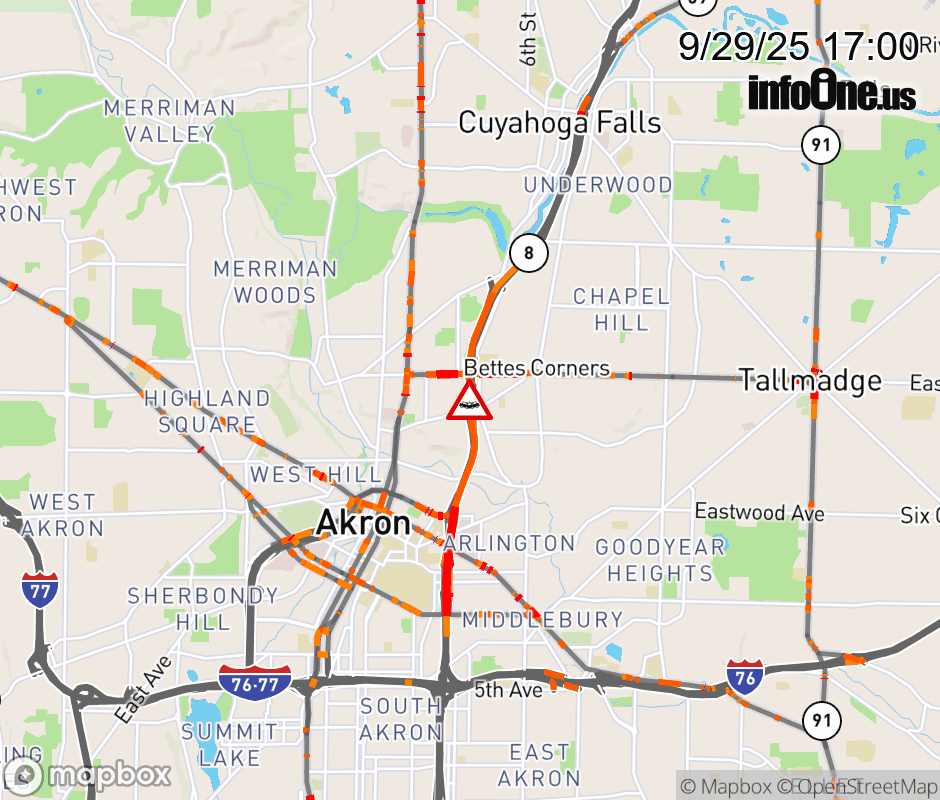 The right lane is blocked on SR-8 South/SR-59 West beyond SR-261/Tallmadge Ave, due to a crash. ![]() |