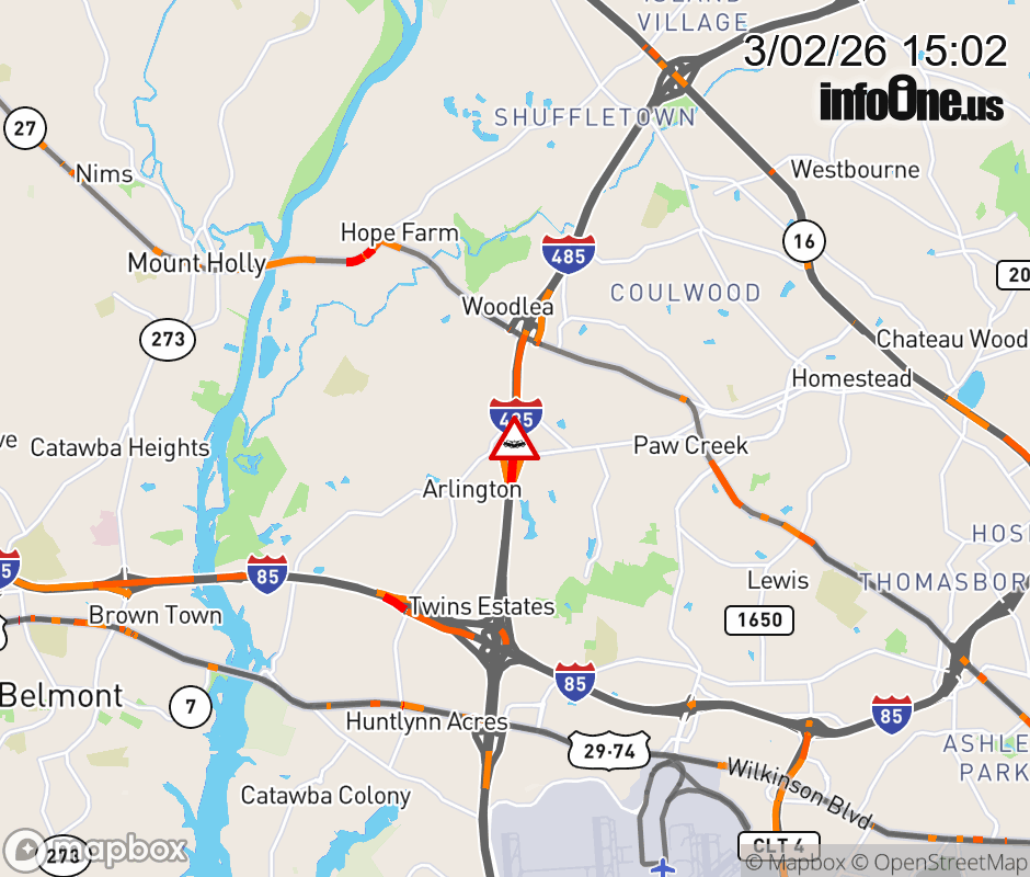 The left shoulder is closed past Exit 12 (Moores Chapel Rd.). Updated: Mon 3/2/26 3:02 PM EST ![]() Updated: Mon 3/2/26 3:02 PM EST |