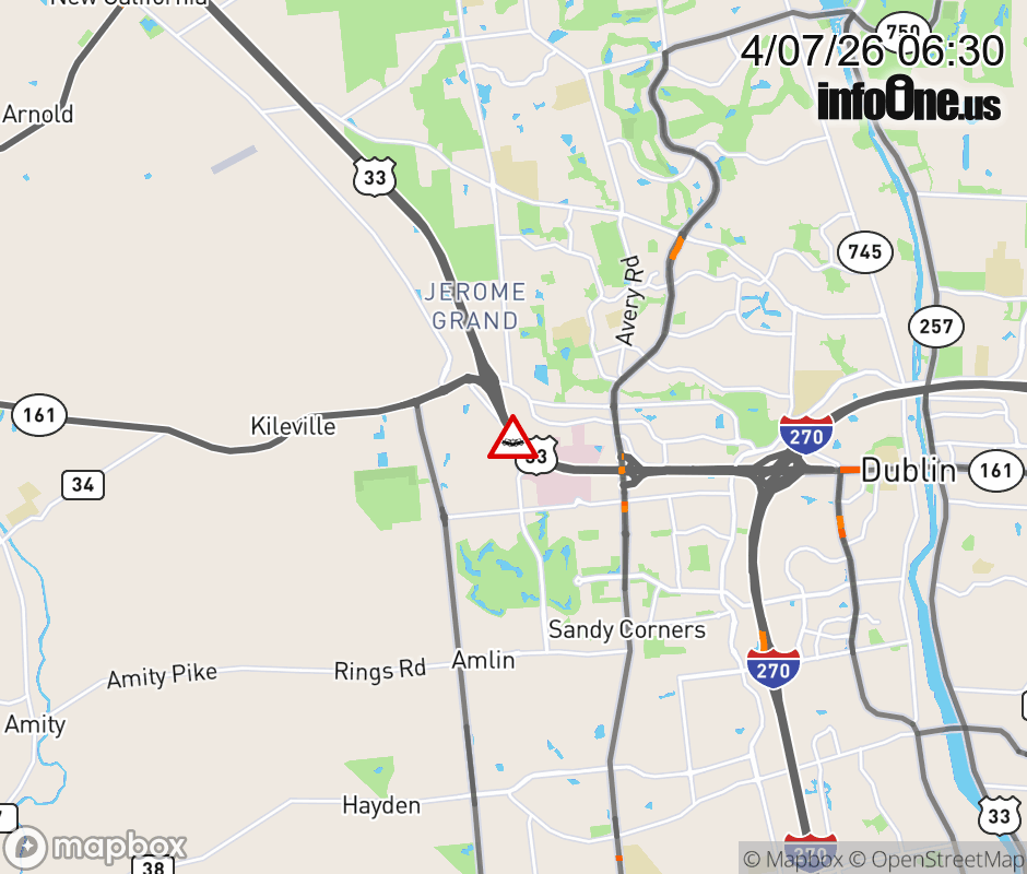 The left shoulder is blocked on US-33/SR-161 East beyond Post Rd, due to a crash. ![]() |