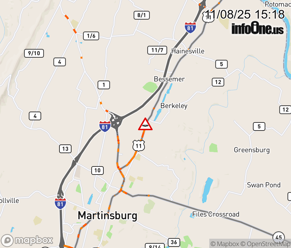 Vehicle Crash on US-11 (Williamsport Pike at Lights Addition Drive). Updated: Sat 11/8/25 3:18 PM EST ![]() Updated: Sat 11/8/25 3:18 PM EST |