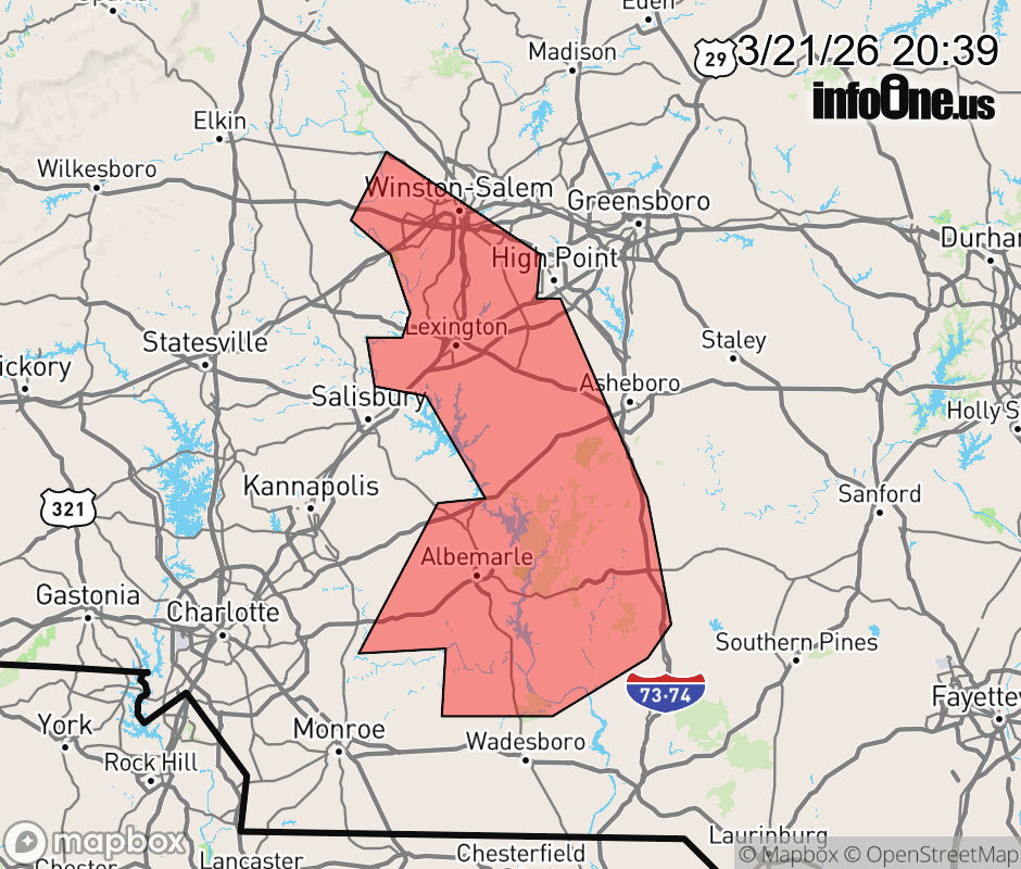 Canceled 3/21/26 9:30 PM Special Weather Statement issued March 21 at 8:38PM EDT by NWS Raleigh NC At 835 PM EDT, Doppler radar was tracking a cluster of strong thunderstorms along a line extending from Yadkinville to near Cleveland to near Kannapolis. Movement was southeast at 35 mph. HAZARD...Wind gusts in excess of 30 mph and pea size hail. SOURCE...Radar indicated. IMPACT...Gusty winds could knock down tree limbs and blow around unsecured objects. Minor hail damage to vegetation is possible. Locations impacted include... Winston-Salem, High Point, Lexington, Albemarle, Troy, Badin Lake, Thomasville, Clemmons, Biscoe, and Bermuda Run. This includes the following highways... Interstate 85 between Mile Markers 84 and 109. Interstate 40 between Mile Markers 182 and 198. ![]() |