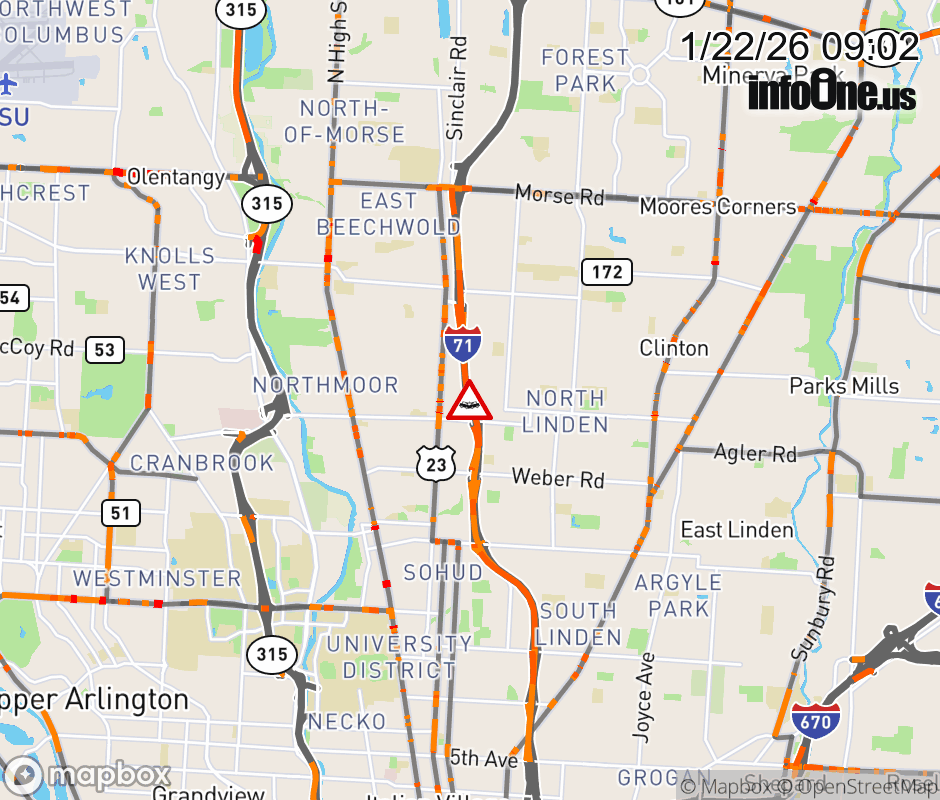The left shoulder is blocked on I-71 North beyond North Broadway, due to a crash. ![]() |