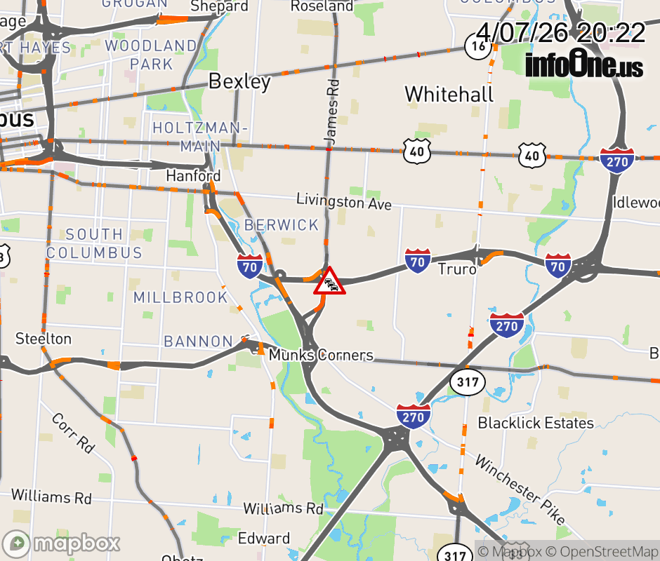 The right lane is blocked on I-70 West at James Rd, due to repairs/maintenance. ![]() |