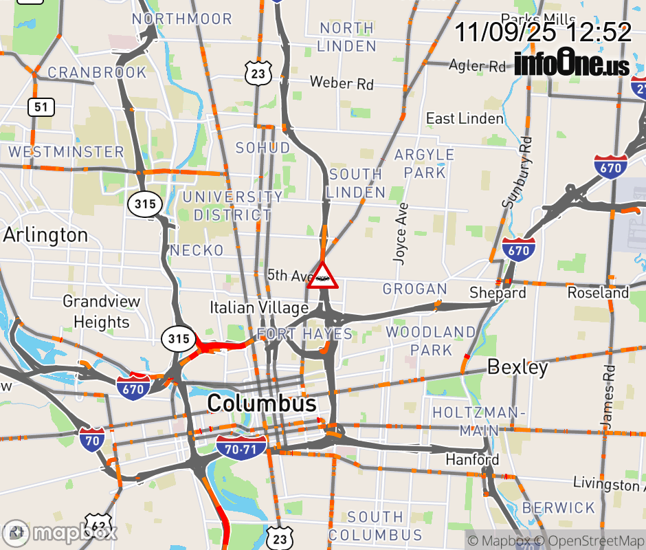 The right lane is blocked on I-71 North beyond I-670 West, due to a crash. Updated: Sun 11/9/25 12:52 PM EST ![]() Updated: Sun 11/9/25 12:52 PM EST |