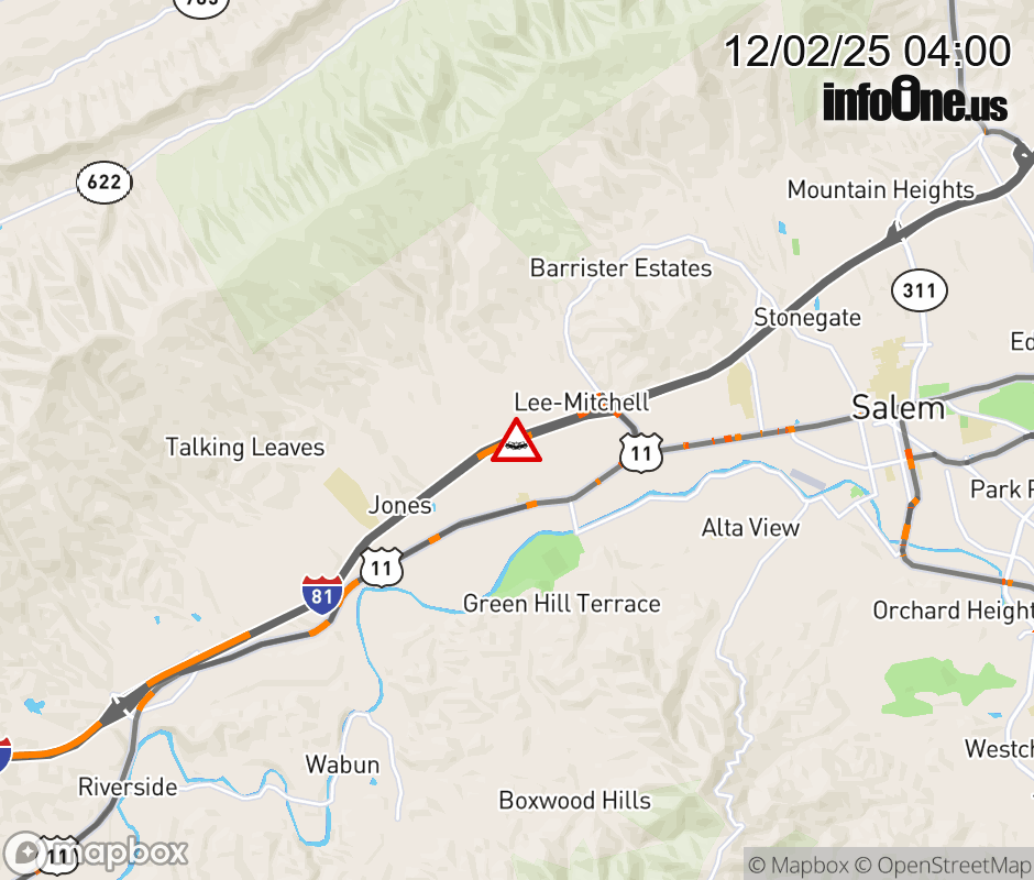 On I-81 at mile marker 136.3 in the County of Roanoke, motorists can expect delays due to a vehicle crash. The north left shoulder and left lane are closed. ![]() |
