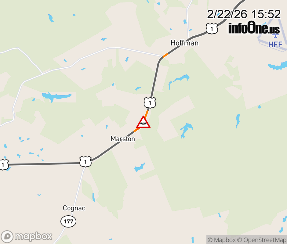The road is closed near Old Laurel Hill Rd. Updated: Sun 2/22/26 3:52 PM EST ![]() Updated: Sun 2/22/26 3:52 PM EST |