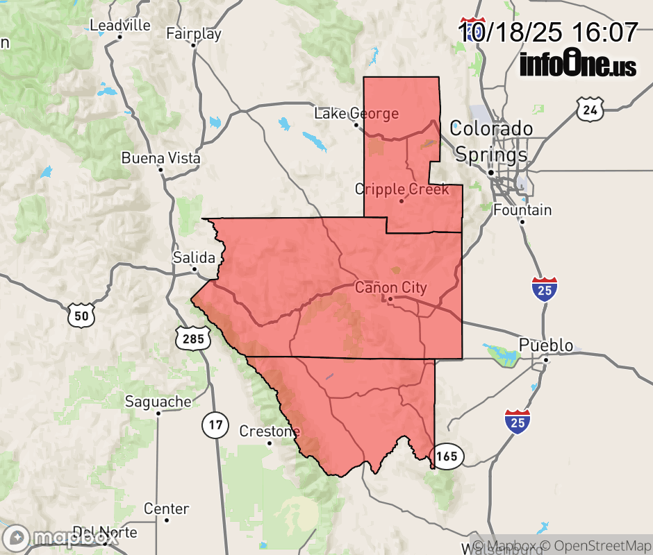 Canceled 10/19/25 12:35 AM Frost Advisory issued October 18 at 2:06PM MDT until October 19 at 9:00AM MDT by NWS Pueblo CO * WHAT... Temperatures as low as 32 will result in frost formation. * WHERE... Canon City Vicinity/Eastern Fremont County. * WHEN... From 10 PM this evening to 9 AM MDT Sunday. * IMPACTS... Frost could harm sensitive outdoor vegetation. Sensitive outdoor plants may be killed if left uncovered. ![]() |