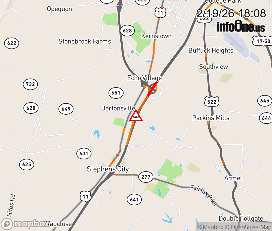 On I-81 South at mile marker 309.1 in the County of Frederick, motorists can expect delays due to a vehicle crash. Updated: Thu 2/19/26 6:08 PM EST ![]() Updated: Thu 2/19/26 6:08 PM EST |