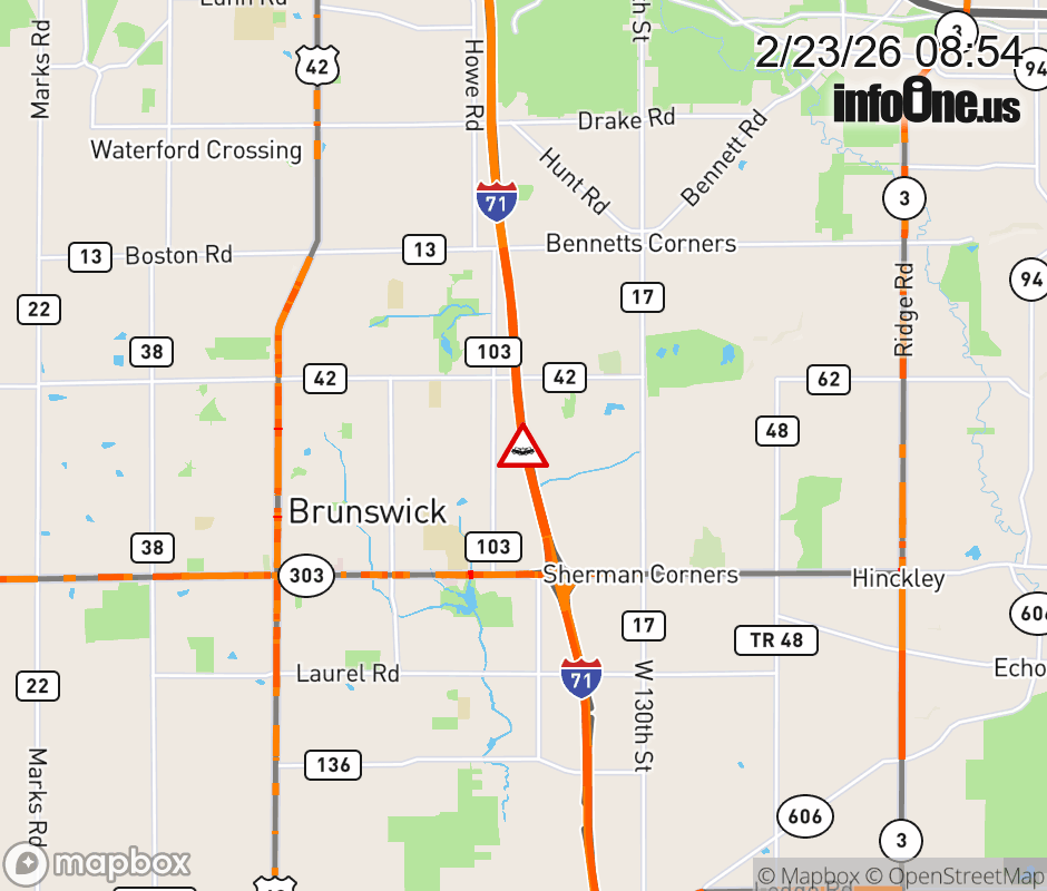 Expect lane closures on I-71 South beyond SR-82/Royalton Rd, due to a crash. ![]() |