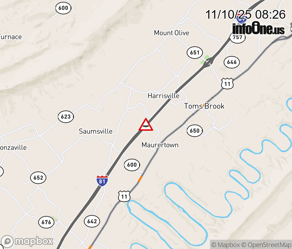 On I-81 at mile marker 288.7 in the County of Shenandoah, motorists can expect delays due to a vehicle crash. The south left shoulder and left lane are closed. Updated: Mon 11/10/25 8:26 AM EST ![]() |