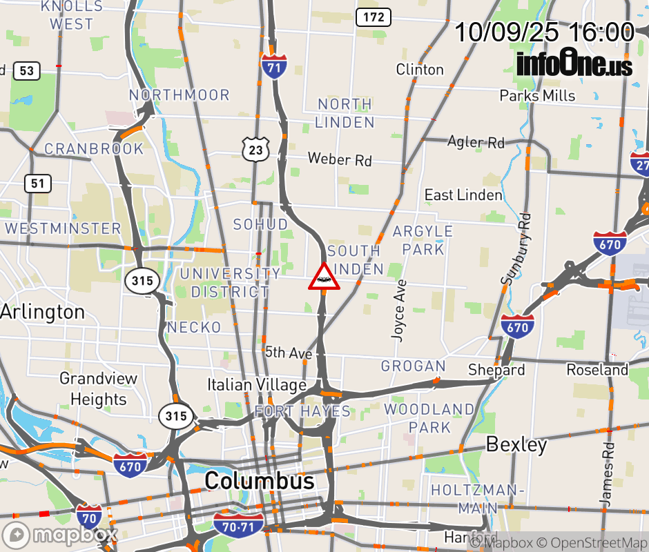 The left lane is blocked on I-71 North beyond 17th Ave, due to a crash. Updated: Thu 10/9/25 4:00 PM EDT ![]() |