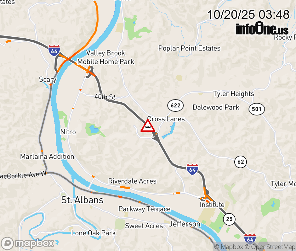 Location: I-64 at MM 47.0, WV Accident.