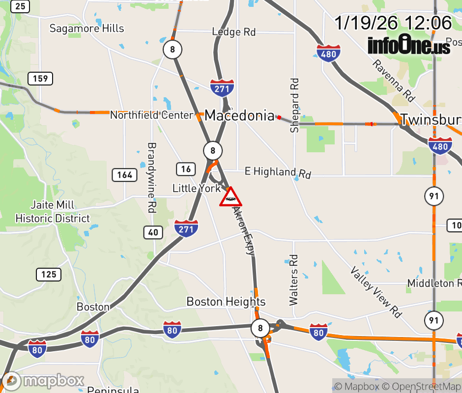 The right shoulder is blocked on Ramp I-271 South to SR-8 South, due to a crash. Updated: Mon 1/19/26 12:06 PM EST ![]() Updated: Mon 1/19/26 12:06 PM EST |