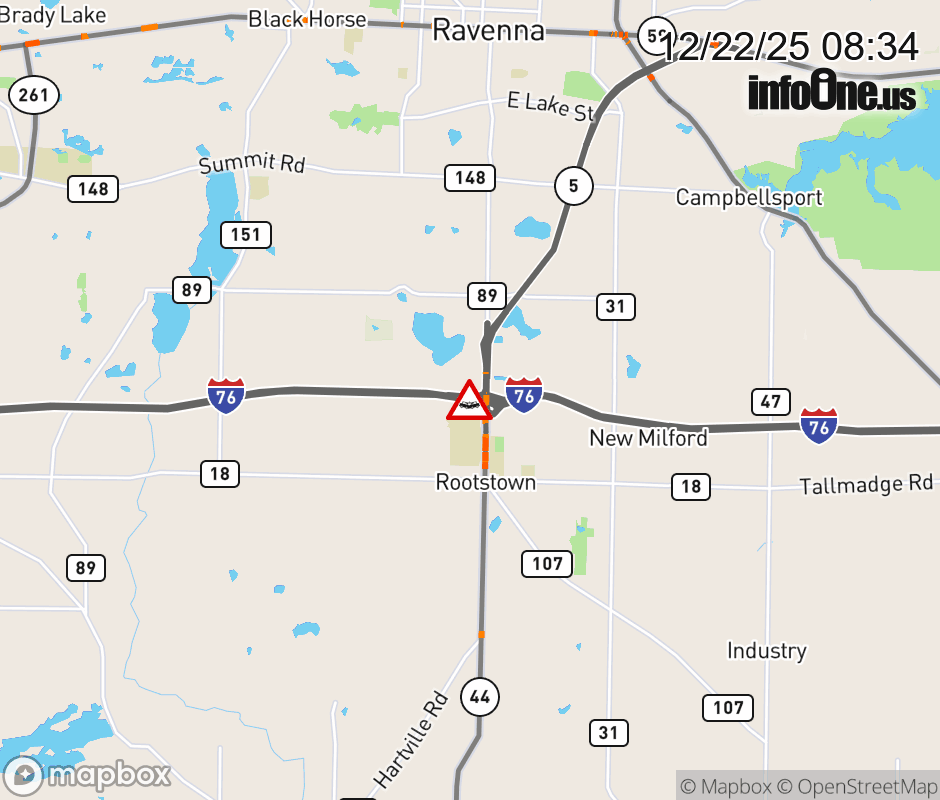 The left shoulder is blocked on I-76 East at SR-44 South, due to a crash. ![]() |
