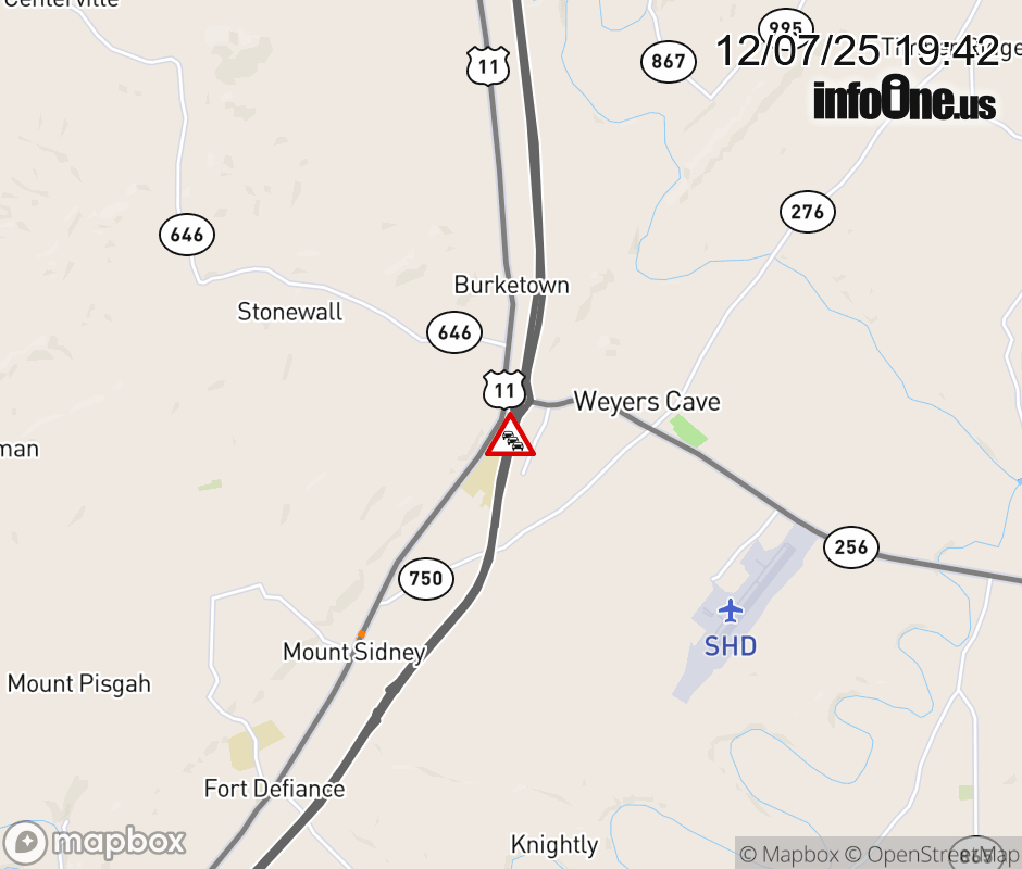 On I-81 South at mile marker 234.9 in the County of Augusta, motorists can expect delays due to an incident. Updated: Sun 12/7/25 7:42 PM EST ![]() Updated: Sun 12/7/25 7:42 PM EST |
