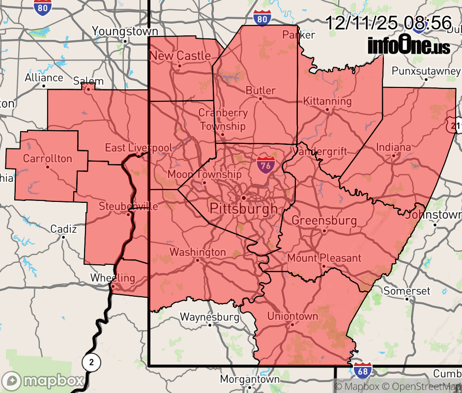 Canceled 12/11/25 12:00 PM Special Weather Statement issued December 11 at 8:55AM EST by NWS Pittsburgh PA Snow showers, with locally heavier bands of lake effect snow, will continue to move across the area this morning. Visibility could be reduced to a half mile or less at times, with a quick half inch to an inch of snow in persistent bands. This could create hazardous conditions on roads and sidewalks. Use caution if traveling this morning. ![]() |