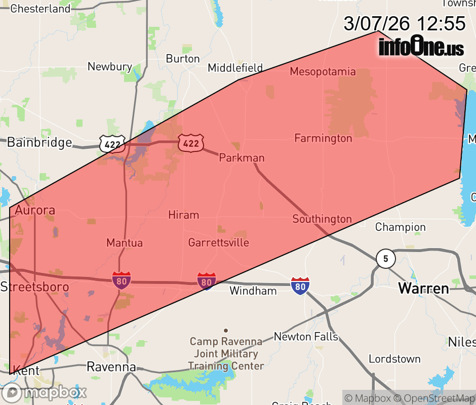 Canceled 3/7/26 1:30 PM Special Weather Statement issued March 7 at 12:53PM EST by NWS Cleveland OH At 1253 PM EST, Doppler radar was tracking a strong thunderstorm over Streetsboro, or near Ravenna, moving northeast at 55 mph. HAZARD...Wind gusts up to 50 mph and half inch hail. SOURCE...Radar indicated. IMPACT...Gusty winds could knock down tree limbs and blow around unsecured objects. Minor hail damage to vegetation is possible. Locations impacted include... Kent, Streetsboro, Middlefield, Garrettsville, North Bloomfield, Mantua, West Farmington, Bristolville, Aurora, Parkman, Hiram, and Sugar Bush Knolls. ![]() |