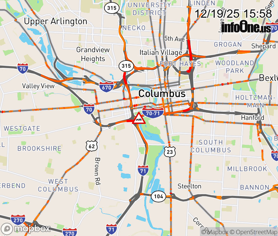 The left shoulder is blocked on I-70 East at I-71/SR-315, due to a disabled vehicle. Updated: Fri 12/19/25 3:58 PM EST ![]() Updated: Fri 12/19/25 3:58 PM EST |